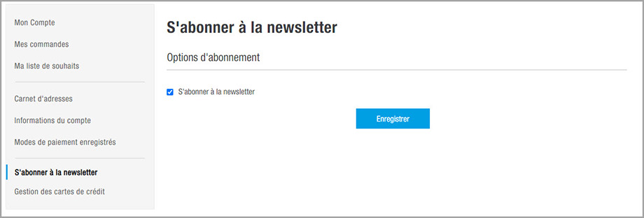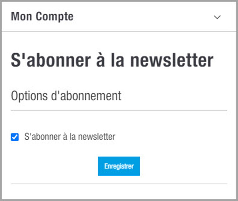 Dans la partie inférieure, vous voyez le statut de votre abonnement à la newsletter et vous pouvez le gérer en cliquant sur la case à cocher.