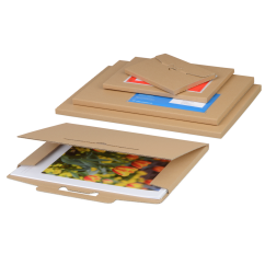 L’emballage spécial économique d'une seule pièce avec fermeture pratique par patte rentante pour les marchandises plates, tels que calendriers, dossiers, documentations, imprimés, etc.
