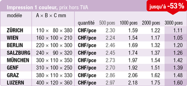 • Dimensions / construction: Tailles et formats individuels, ainsi que des emballages constructifs