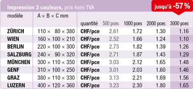 • deux inserts de renforcement en carton dans le rabat supérieur de 900 g/m² et un insert en carton au fond de 450 g/m²