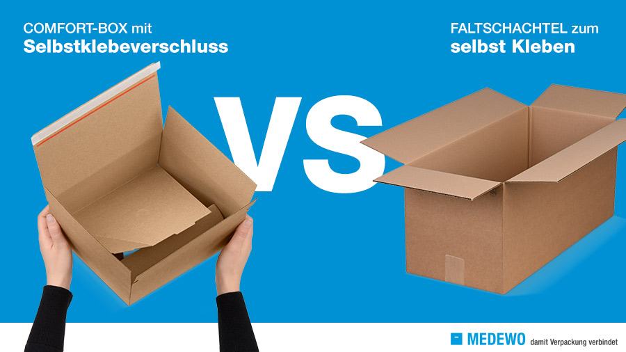 Ihre Produkte doppelt so schnell verpacken und auf den Versandweg bringen wie mit Ihrem aktuellen Faltkarton? Das geht. Die COMFORT-BOX überzeugt mit starkem Selbstklebeverschluss, mit einem Griff aufgerichteten Automatikboden und fadenverstärkter Aufreisshilfe. Daneben bietet die stabile COMFORT-BOX mit Selbstklebeverschluss besten Schutz vor unbefugtem Zugriff durch ihre überlappenden Boden- und Deckelklappen.