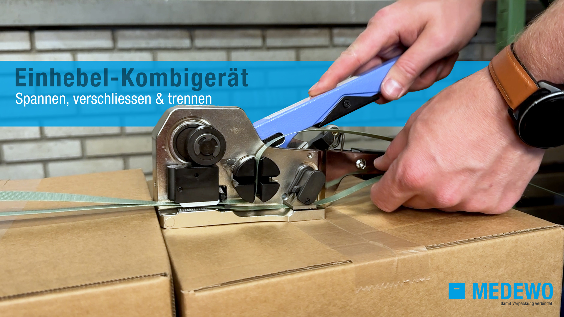 Das Einhebel-Kombigerät vereint das Spannen, Verschliessen und Abtrennen von Umreifungsbändern – alles in nur einem ergonomischen Werkzeug. Hergestellt für professionelle Anwender, meistert es PET-, PP- und Papierumreifungsbänder zuverlässig. Sein robustes Design, gepaart mit der passenden Verschlusshülse, gewährleistet höchste Verschlusskraft – sogar bei horizontaler oder vertikaler Anwendung.