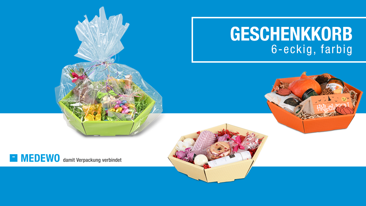 Mit dem Geschenkkorb 6-eckig, farbig setzen Sie Ihre Präsente perfekt in Szene. Die besondere Form mit schräg nach aussen verlaufenden Seitenwänden und erhöhter Rückwand eignet sich ideal für eine ansprechende Produktpräsentation – perfekt für Flaschen oder grössere Inhalte. Erhältlich in den frischen Farben Crème, Gelb, Orange und Hellgrün.