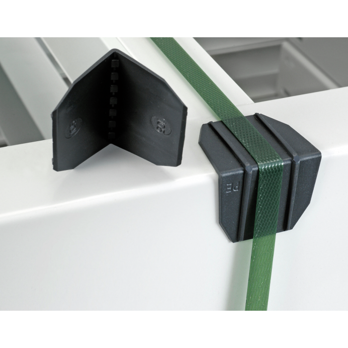 Die extra starken Kantenschutzecken sind aus robustem, rezykliertem Kunststoff gefertigt – für maximalen Schutz beim Transport Ihrer schweren Güter. Sie sind für Umreifungen mit sehr hoher Spannkraft konzipiert und halten grosser Belastung stand. Die Kanten des Packgutes sind auch bei starker Beanspruchung effektiv geschützt.