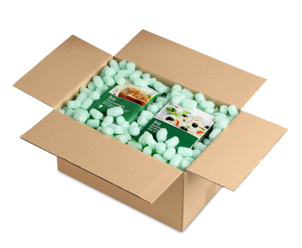 Unsere Bio-Chips werden aus einem Stärke-Gemisch aus Mais, Kartoffel und Weizen hergestellt. Sie sind heimkompostierbar, biologisch abbaubar und besitzen antistatische Eigenschaften – perfekt für den Schutz empfindlicher Produkte. Die Lösung für nachhaltig agierende Unternehmen, die Wert auf ökologische Verpackung legen.