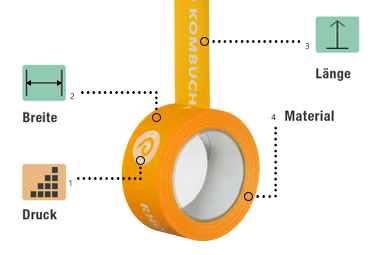Druck: Positiv- oder Negativ-Druck in bis zu 4 Farben möglich – ob auf weissem, braunem oder transparentem Packband