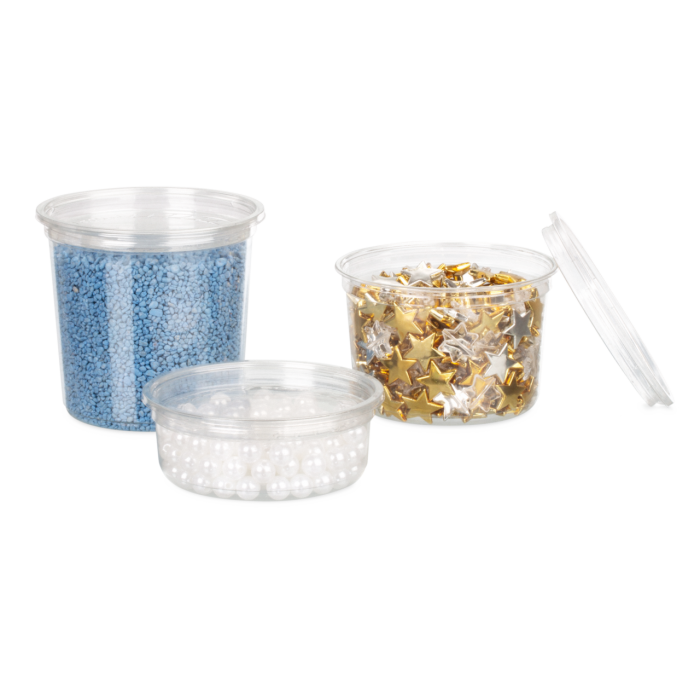 Der ideale Rundbecher zur Aufbewahrung oder Abfüllung von Kleinteilen, Granulat, Deko-Artikeln, Lebensmitteln usw. Sowohl der für alle Dosengrössen passende Deckel, als auch die Dose sind aus recyceltem PET hergestellt.