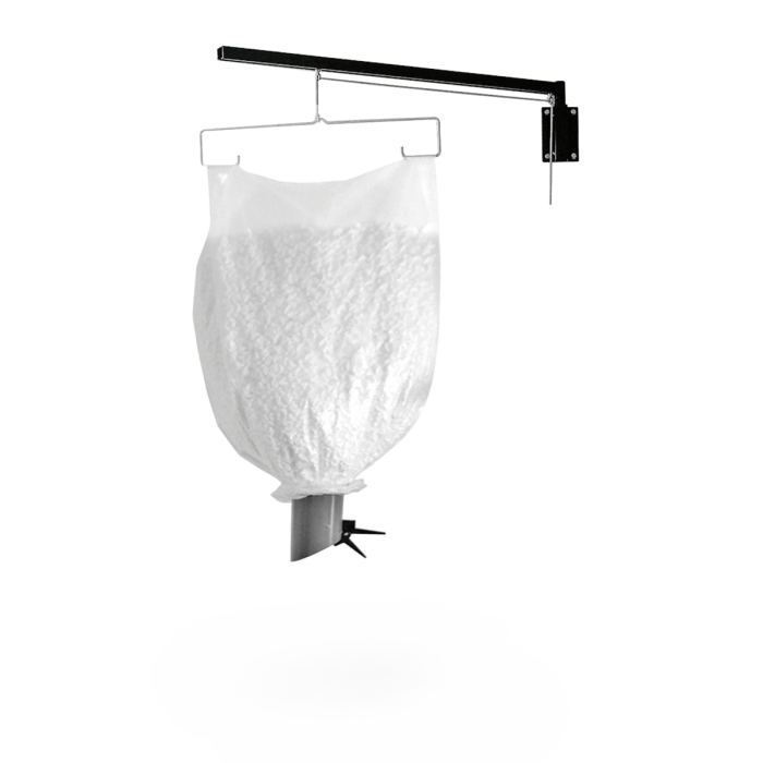 robuste Konstruktion zur Montage an der Wand beinhaltet: Schwenkarm aus Metall, Aufhängebügel, Ausgiesser mit Dosierklappe, Gummi zu Ausgiesser und Seil (Plastiksack mit Füllmaterial nicht inklusive!)
