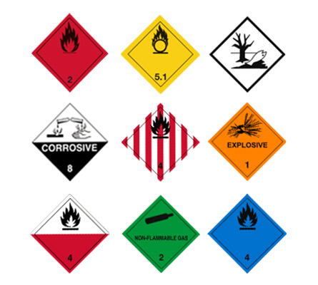 Mit dieser Kennzeichnung zeigen Sie an, welcher Gefahrstoff – ob ätzend, entzündlich oder giftig – versandt wird, da die entsprechende Gefahrgutklasse auf dem Aufkleber aufgedruckt ist.