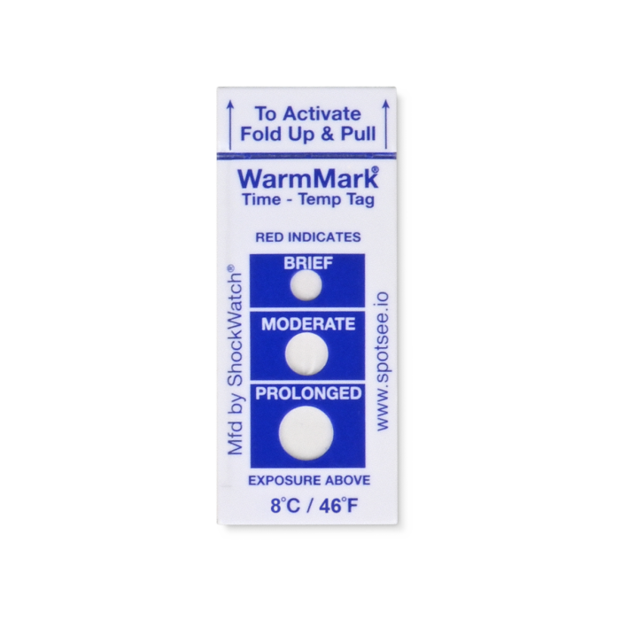 Unser Einweg-Temperaturindikator registriert permanent die Temperatureinwirkung. Das Etikett ist selbstklebend und einfach anzubringen. Werden die Grenzwerte überschritten färbt sich der Temperaturindikator rot. So erkennen Ihre Kunden schnell Abweichungen der optimalen Temperatur während des Transports. Der Indikator zeigt auch die Dauer der Überschreitung an. Er hilft somit die Kühlkette einzuhalten und ist ideal für die Kontrolle Ihrer Thermo-Transporte geeignet.