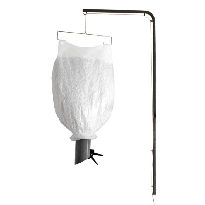 beinhaltet: Aufhängebügel, Ausgießer mit Dosierklappe, Gummi zu Ausgießer und Seil (Schwenkarm aus Metall zur Montage am Packtisch und Plastiksack mit Füllmaterial nicht inklusive)