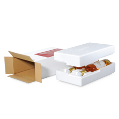 Flaschen sind sicher fixiert und durch Falteinlagen voneinander getrennt – einfach aufzurichten