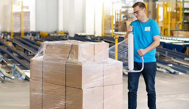 Stretchfolie sichert Packstücke auf der Palette während Transport und Lagerung. Sie fixiert sowie stabilisiert die Ladung und hält Schmutz, Feuchtigkeit oder bei eingefärbter Folie neugierige Blicke ab.