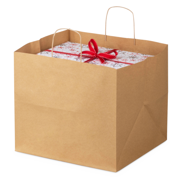 641.240 Tragetasche aus Kraftpapier XXL 365×330×320 mm, braun 110 g/m², mit gedrehter Kordel Öffnen