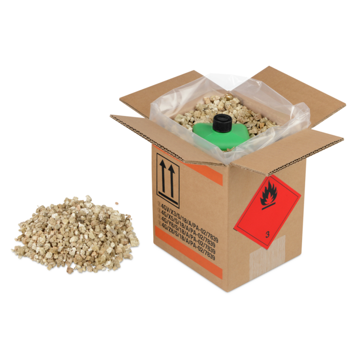 VERMICULITE bindet chemische Substanzen wie z. B. Farben, Lacke, Verdünner, Säuren, Laugen usw. Das mineralische Aufsaugmaterial ist speziell zugelassen für Gefahrguttransporte.