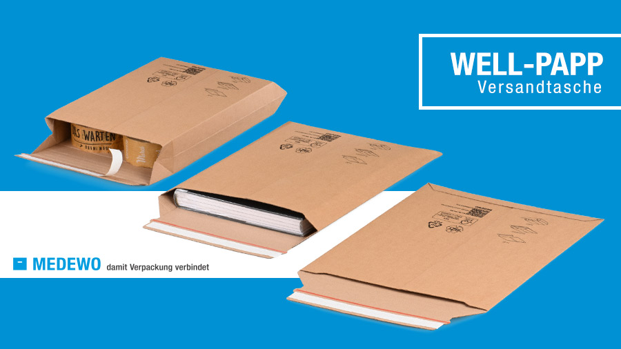 Durch Ihre variable Füllhöhe von bis zu 70 Millimeter passen unterschiedlichste Waren bestens hinein. Mit Selbstklebeverschluss und integriertem Aufreißfaden ist die stabile Box mit hohem Knickschutz zudem zeitsparend verschlossen, sicher versandt und einfach von Ihren Kunden geöffnet. Verpacken Sie Muster, Kleider, Bücher, Elektronik und vieles mehr – die Wellpapp-Versandbox ECOMMERCE bringt die Waren sicher zu Ihren Kunden.
