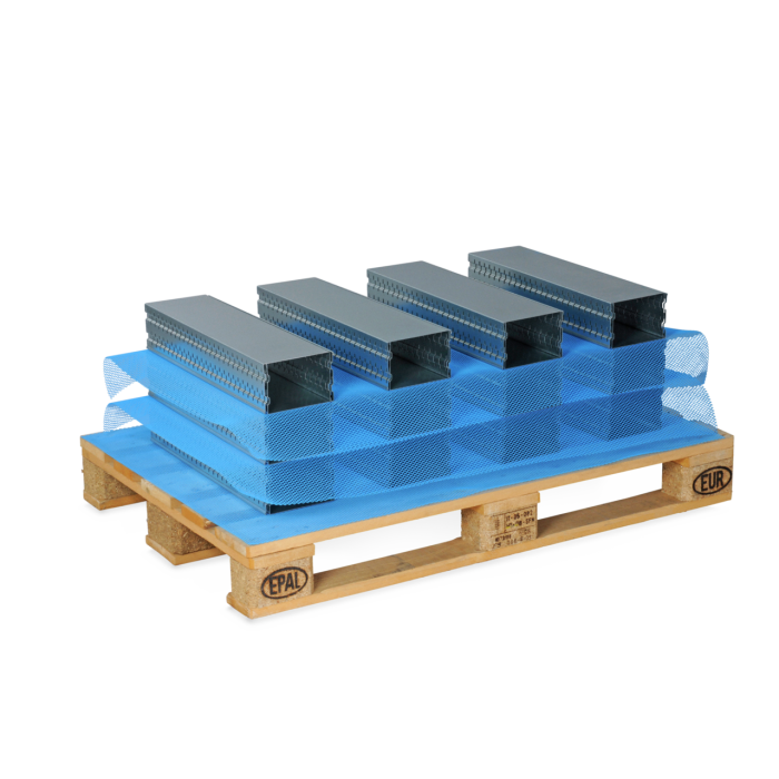 Die Zwischenlage aus rezykliertem Kunststoff eignet sich ideal für die Trennung von Teilen aus Metall, Kunststoff, Stein oder Beton. Die Gitterboxstruktur ermöglicht eine Luftzirkulation und verhindert so die Bildung von Kondenswasser. Dank robustem Material ist die Gittermatte mehrfach verwendbar und auch als Waschgitter in Reinigungsanlagen einsetzbar.